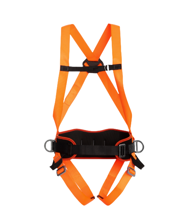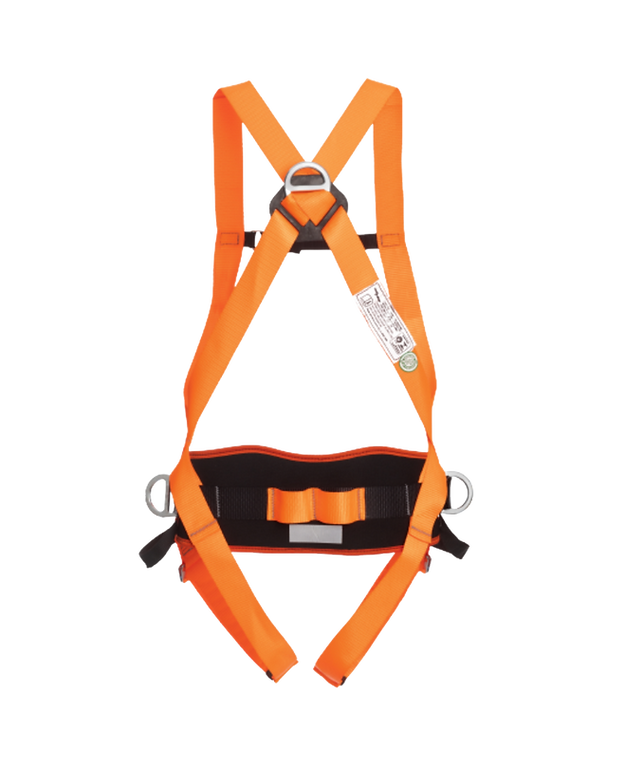 Modelo conta com 2 pontos de conexão sendo eles, 1 ponto de ancoragem na Dorsal em meia argola D, em aço, 1 ponto na cintura para uso simultâneo, para trabalhos em posicionamento onde o operador possa estar com ambas as mãos livres.
