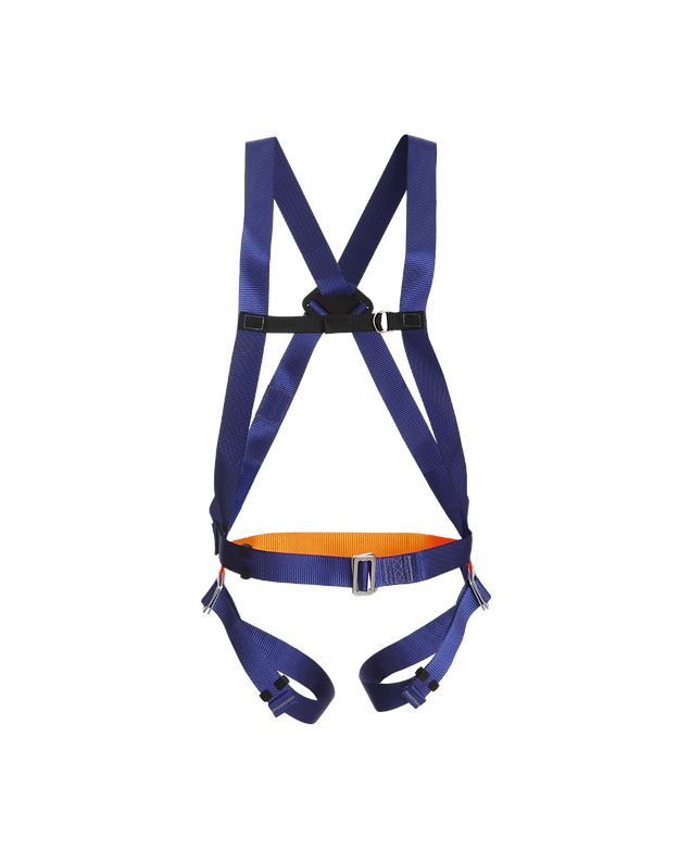 Cinturão de Segurança tipo paraquedista com 01 ponto de conexão. 03 fivelas duplas em aço carbono para ajuste nas pernas e cintura; 01 meia argola em aço carbono com ponto de conexão dorsal; Aplicação: Normalmente os sistemas de travamento de queda individuais incluem um cinturão tipo paraquedista e um subsistema de conexão.